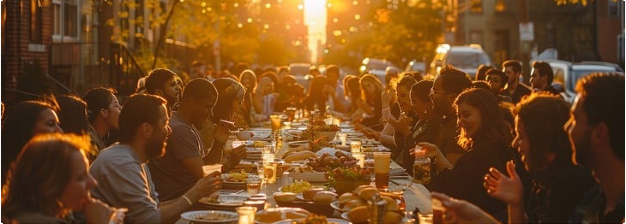 There's something magical about gathering people around a table. As an official Feast host, you'll create transformative experiences in your own space, bringing together your community for evenings of profound conversation and connection. We'll support you with training, resources, and a network of fellow hosts committed to this work.
